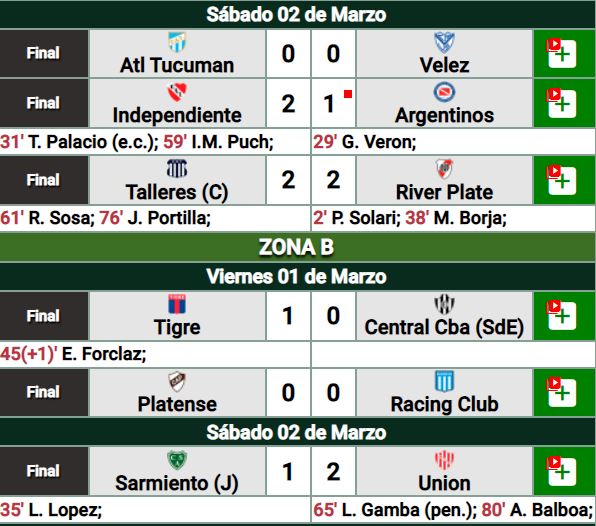 Comenzó desde el jueves a jugarse la fecha 8 de la Copa de la LPF-Copa Sur Finanzas 2024 y arrojó los siguientes resultados: FUENTE: https://promiedos.com.ar FUENTE: https://promiedos.com.ar Compartir Navegación de entradas Discurso del Presidente Argentino en el Inicio de las sesiones legislativas 2024 Se jugaron los partidos pendientes de la fecha 8 de la Copa de la LPF-Copa Sur Finanzas 2024