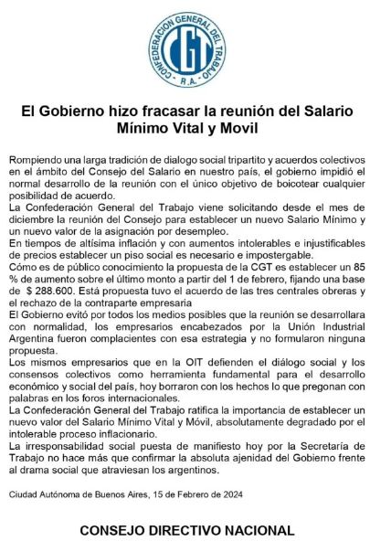 Comunicado de la Confederación General del Trabajo Compartir Navegación de entradas El Gobierno cruzó a las organizaciones en la marcha piquetera: “Protestan porque sacamos la intermediación” Los gobernadores: no entregarán gas y petróleo si el Presidente Argentino no cede en el conflicto por los fondos