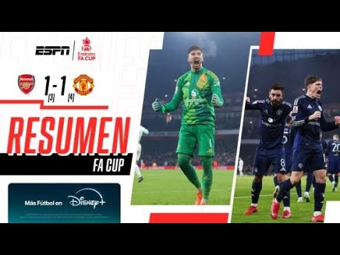 FA Cup 2025 32avos de final Goles: 52′ B. Fernandes (MU); 63′ Gabriel (A). Incidencias: Manchester United se impuso 5-3 en los penales.