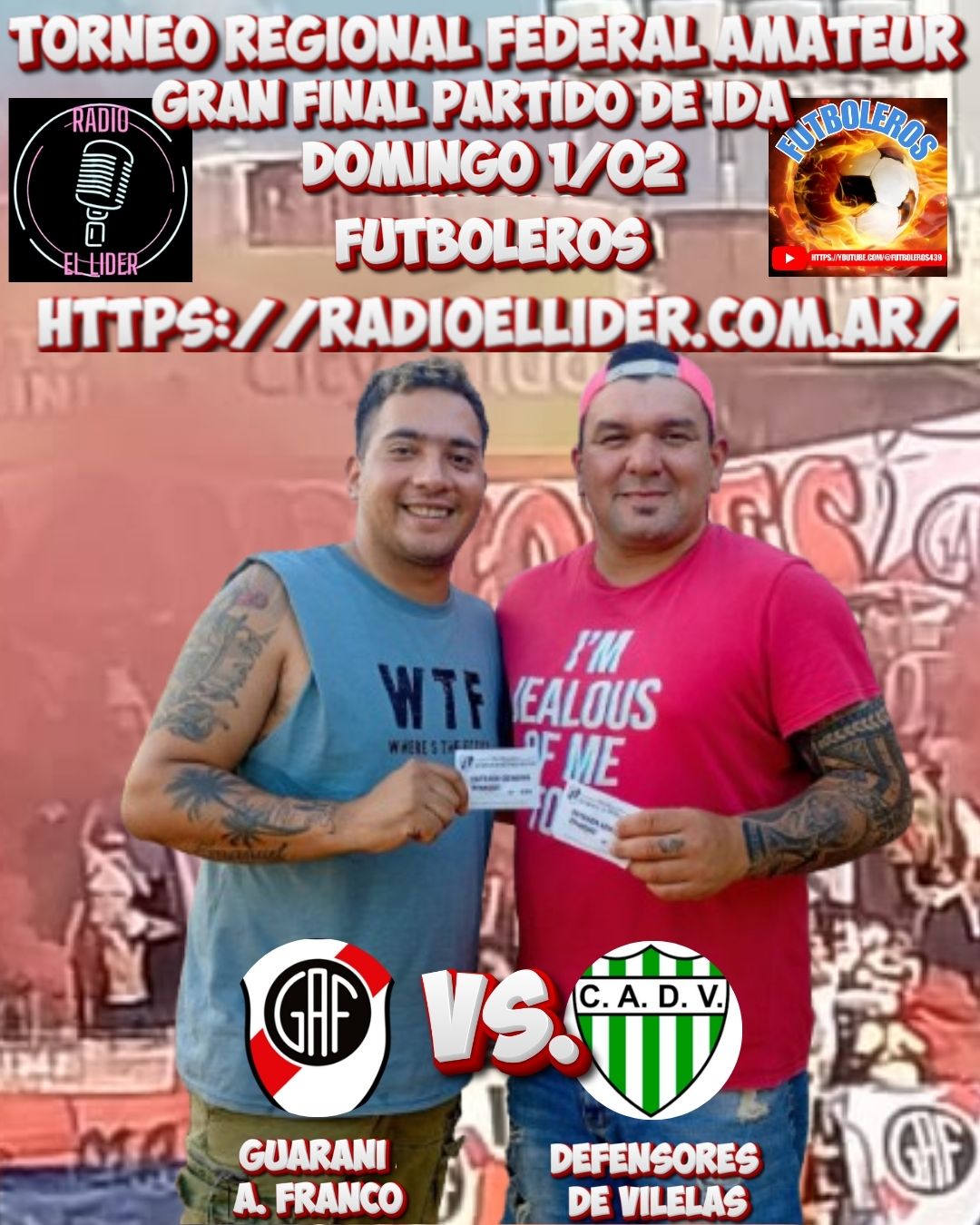Gracias a todos los seguidores del canal, al Señor Alexis Ramos Jefe de Prensa del Club Guarani A. Franco por su gestión al otorgarnos las entradas para el sorteo y los que enviaron sus datos a nuestro mail para el sorteo, a disfrutar de un domingo a todo futbol. Saludos para todos.