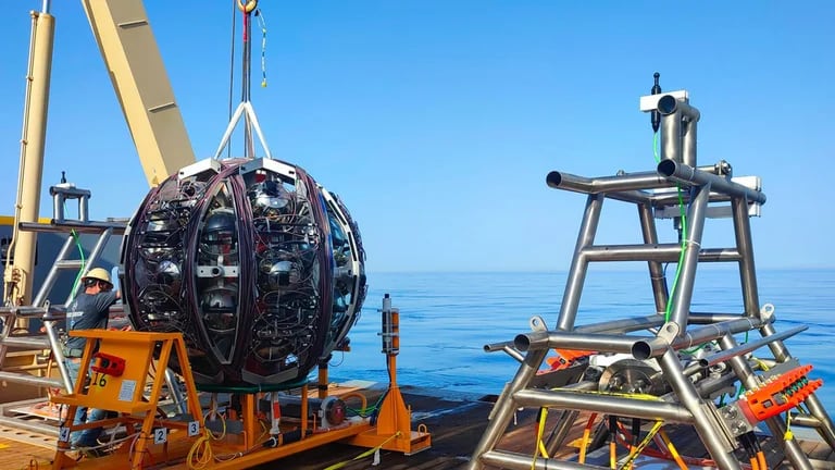 A través de este conjunto de sensores esféricos, conocidos como “ojos artificiales”, el equipo busca capturar los neutrinos que atraviesan la Tierra desde todas las direcciones. Cada uno de estos sensores está diseñado para detectar la tenue luz producida cuando un neutrino interactúa con el agua, un fenómeno conocido como radiación Cherenkov.